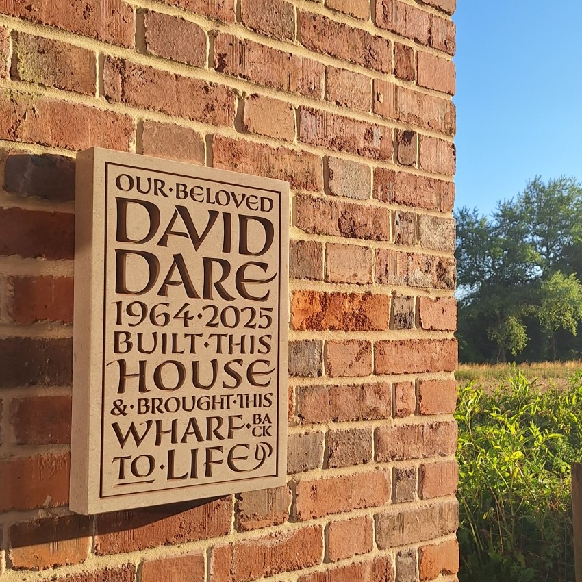 At Artisan Memorials we always recommend that inscriptions on memorial plaques are deeply V-carved, a technique for inscribing memorials that ensures legibility over the very longterm, whilst offering a more beautiful and personal finish.